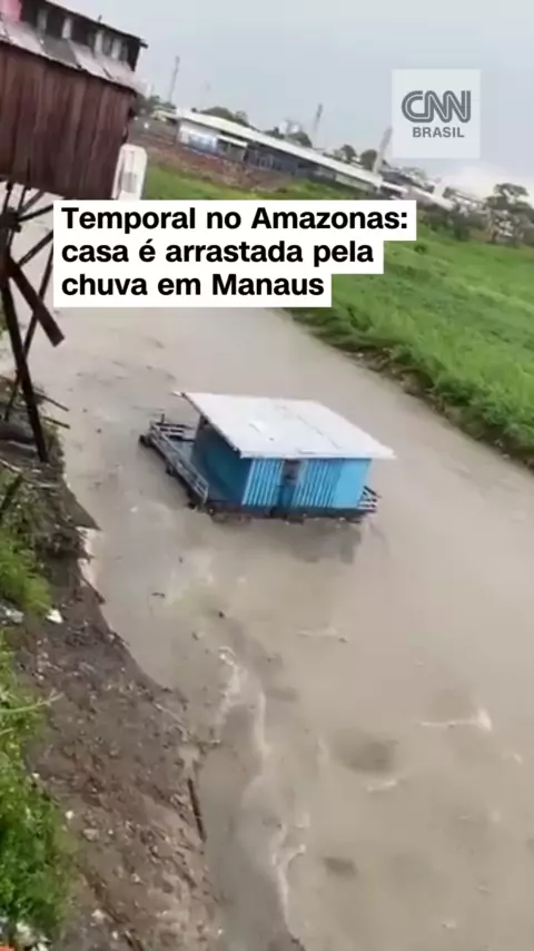 Casa é arrastada pela chuva em Manaus; segundo apuração da CNN, ninguém estava na residência no momento em que ela foi levada pela água #Notícias #Amazonas #Manaus