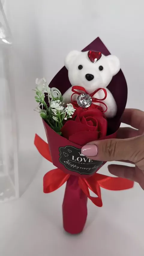 Fofo e encantador! Buquê de Ursinho com Rosa de Sabonete ♥️🌹 #SurpresaEspecial #KwaiBrasil #KwaiTrend #AmoPresentes
