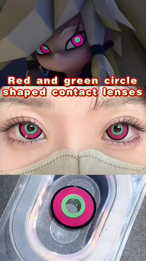 Red and green circle-shaped contact lenses #AnimeContacts#CosplayContacts #CosplayMakeup #ComicPie
