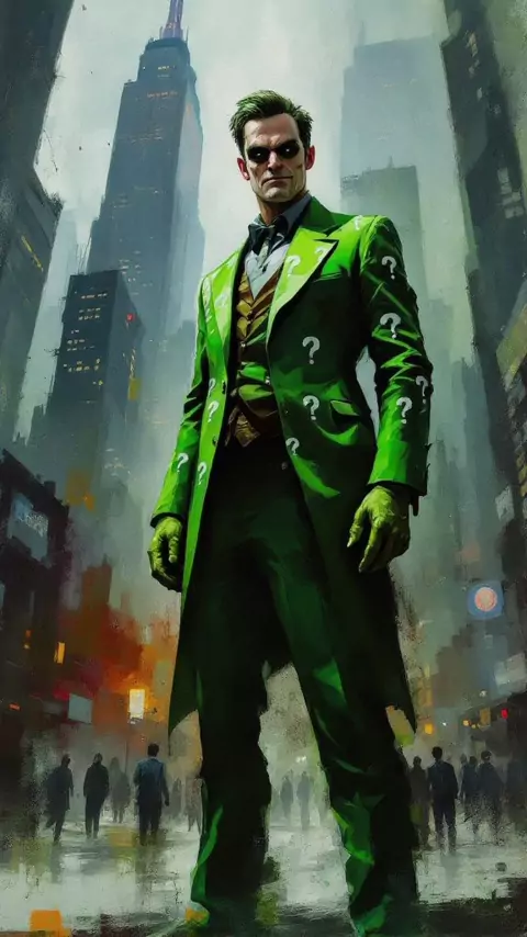 O Charada está de volta com enigmas que desafiam até a mente mais brilhante! 🟩❓ #Charada #Batman #Gotham #DCComics #Vilão