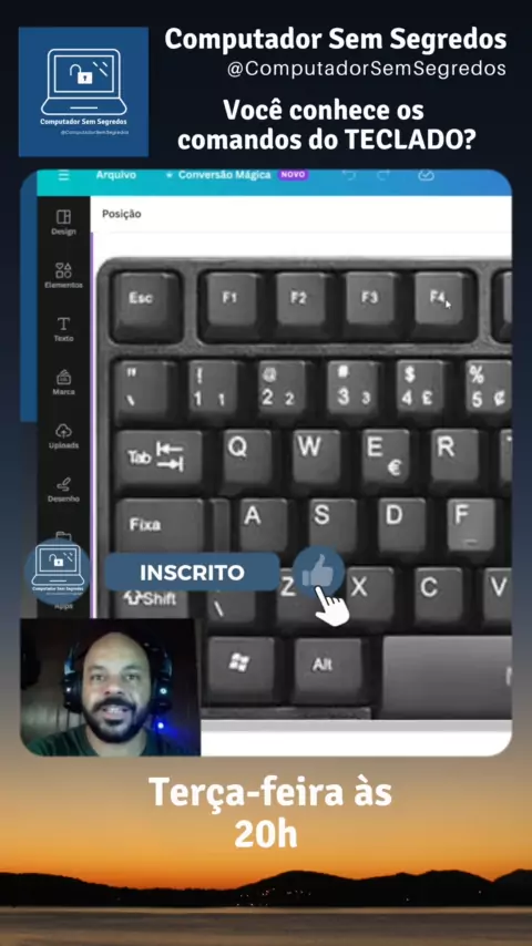 Quais os comandos do #teclado do seu #computador desktop ou #notebook? Você sabe? Hoje, às 20h, tem #live e eu vou te mostrar os comandos e tirar ao vivo. Link na Bio. Me siga, curta, compartilhe e veja minhas dicas. #fyp