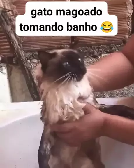 Vídeos engraçados e virais 😂 gato magoado tomando banho kkk #kwai #humor #videoviral #viral #foryou