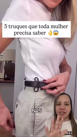 Cinco truques que toda mulher precisa saber — e o último é simplesmente perfeito! ✨👗 Sabe quando o cinto insiste em ficar caindo? Coloca um elástico de cabelo e olha a diferença: elegante, firme e discreto! 👒👌 Calça com boca muito larga? Dobra do jeitinho certo e transforma o look na hora. Simples, rápido e super estiloso! 👠💫 Pro cabelo ficar impecável, usa o pente pra ajustar aquela parte que sobra… o acabamento fica digno de salão! 💇♀️🌸