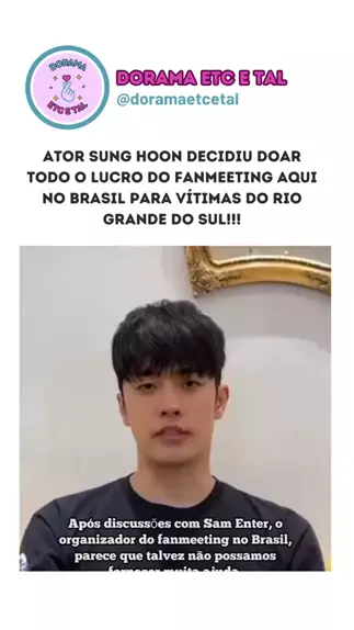 Atitude de milhões!!! 👏🏻👏🏻👏🏻👏🏻 @sunghoon1983 está vindo para o Brasil e doará todo o lucro da sua fanmeeting para vítimas das tragédias do Rio Grande do Sul!!! #sunghoon #riograndedosul #dorama Mais