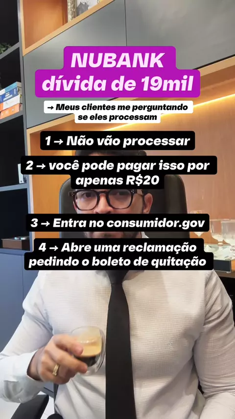 Meus clientes me perguntam sempre se a Nubank processa dívida de 19mil... #nubank #finanças #dívidas #bancos 👇🏽👇🏽👇🏽 O banco está cobrando um valor superior ao dobro do montante original da minha dívida, o que a torna impagável nas condições atuais. Diante disso, solicito a emissão de um boleto para quitação do débito em condições adequadas.