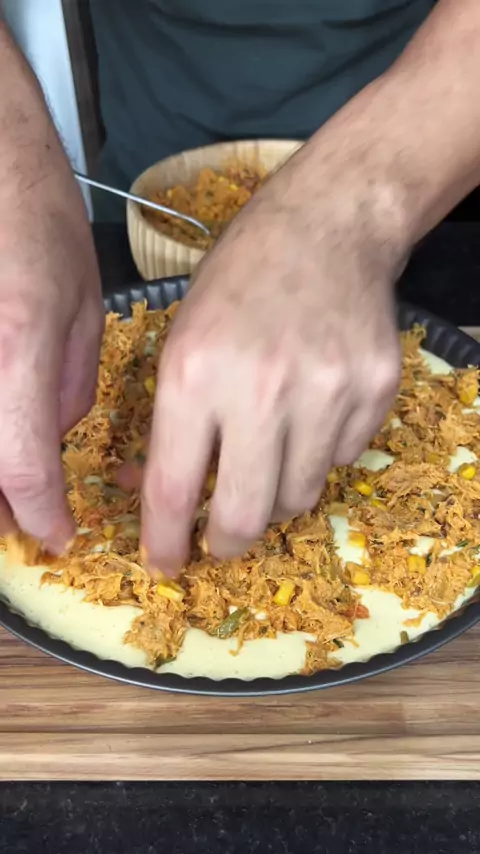 Torta de frango com massa de milho e cebola 🧅 ➡️ @ducavalcantte Ingredientes: Para massa • 03 ovos • 01 lata de milho verde • 02 cebolas grandes • 01 copo americano de leite (180ml) • 01 copo de água • 01 copo menos dois dedos de óleo • 01 colher de café de sal • 02 colheres de sopa de açúcar • 01 sachê 10g de fermento biológico seco • 10 colheres de sopa de farinha de trigo #KwaiChef2025 #temporadanositio3 #brasileirão2025 #2025internationalshortvideocompetition