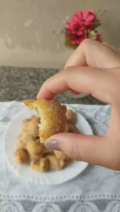 BOLINHO DE CHUVA SEM LEITE E SEM OVO ➡️ 2 xícaras de farinha de trigo ➡️ 1/2 a 1 xícara de água (vai colocando até dar o ponto) ➡️ 1/2 xícara de açúcar ➡️ 1 colher de sopa de fermento em pó 🟣 Frite em óleo quente, mas não quentr demais (se não fica cru por dentro) #casaecozinha #receita #reels #bolinhodechuva #receitavegana