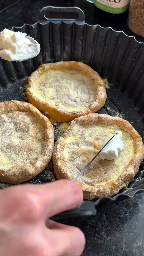 ESFIHA SAUDÁVEL 😋 ✨ Ingredientes: Massa: - 200g de batata inglesa - 10g de farinha de aveia - 5g de fubá Recheio frango (unidade): - 30g de frango cozido - 7g de requeijão light Recheio queijo: - 30g Cottage - 15g mussarela 🥣 Modo de preparo: Amasse as batatas e misture com a farinha de aveia e os temperos à gosto. Depois molde no formato de esfirras (deixando a massa bem fininha), leve em uma forma de silicone ou untada, polvilhe o fubá e leve na airfryer por 15 minutos à 200 graus.