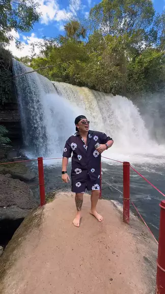 Na cachoeira ao som de “balanço do reggae” 😎🎵 Continuem assistindo no @youtubebrasil ❤️ #japaozin #arraiápraparedão #obrabodosparedoes