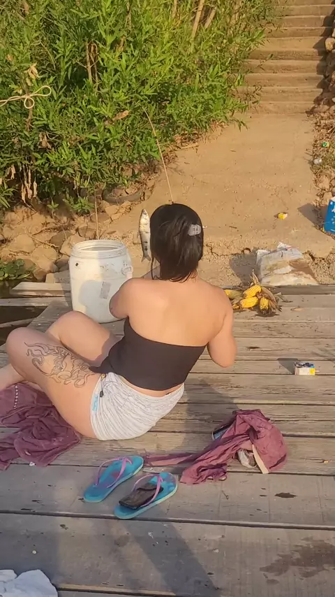 ate que enfim ela pegou um peixe