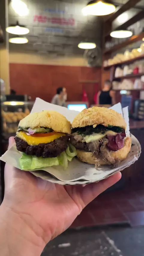 Pão de queijo recheado da Pão de Queijaria em Belo Horizonte 🔍 Onde comer em BH; Onde comer em Belo Horizonte, O que fazer em BH; Tudo que comi em Belo Horizonte #tudoquecomi #tudooqueeucomo #belohorizonte