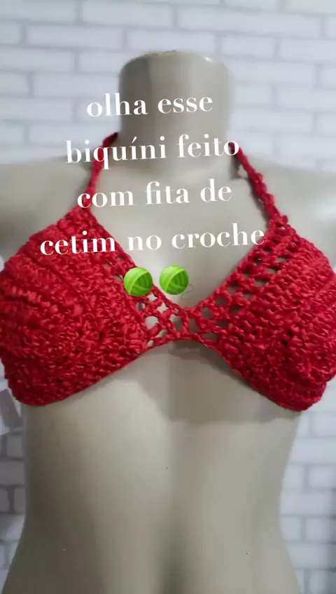 biquíni em croche feito com fita de cetim na @fiosdasimone #croche #carnaval #folia #usecroche #fitadecetim