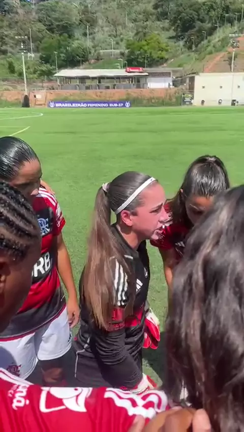 Ontem o Mengão venceu mais uma no Brasileirão Sub-17! Antes da partida, a goleira Julia pediu a palavra! Isso aqui é Flamengo! 💪❤️🖤 #KwaiFla #MeninasDaGávea #FutebolFeminino #BrasileirãoSub17 #Flamengo