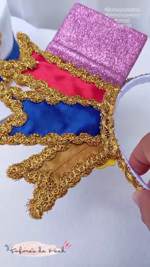 Bom dia 🪗🔥! . Arranjo para cabelo e chapéu EJRC, criados especialmente para compor o look do casal destaque da quadrilha "Raízes e Tradição do Justiniana". 🪅🪗 . No arquinho trabalhamos o livro aberto em Eva, e fitinhas de cetim com acabamento em dourado. Na produção do chapéu foi utilizado o feltro branco com detalhes que combinam e completam o visual encantador. 🪅🔥🪗 . #FestaJunina #arranjojunino #SãoJoao #quadrulhajunina #escolainfantil