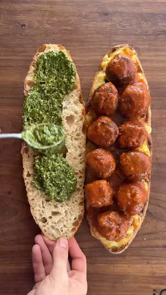 sanduíche de almôndegas com pesto #sanduíche #lanche #Comida #carne