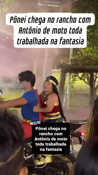 Pônei chega no rancho com Antônio de moto toda trabalhada na fantasia #babados #carlinhosmaia #famosos