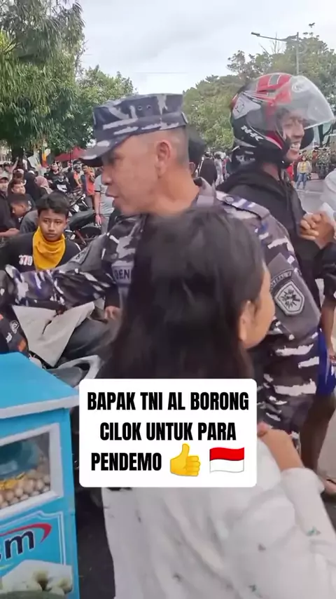 Bapak TNI AL borong semua dagangan Cilok untuk para Pendemo