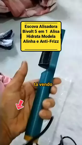 Escova Alisadora Bivolt 5 em 1 Alisa Hidrata Modela Alinha e Anti-Frizz #escova #cabelo #alisadora #kwaishop #eletrica