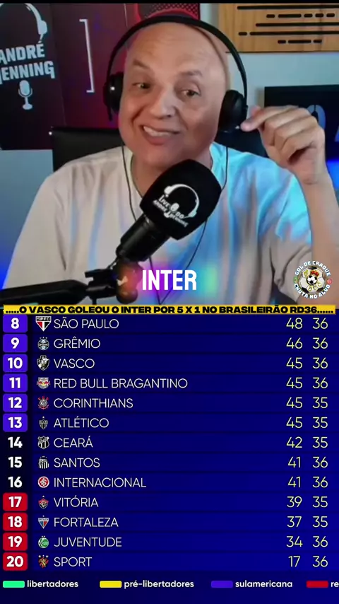 O INTERNACIONAL PERDEU DE GOLEADA PARA O VASCO E PODE ENTRAR HOJE NA ZONA DE REBAIXAMENTO CASO O VITÓRIA VENÇA O MIRASSOL. . #Inter #vasco #zonaderebaixamento #Brasileirão #Futebol