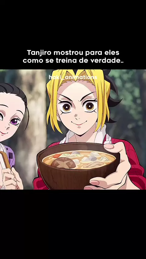 Eles ficaram impressionados ao ver o Tanjiro treinando..