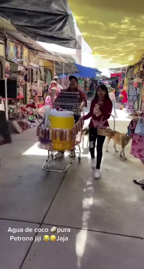 Este senhor vende água de coco e sua filhinha o faz como um cachorro latindo Jiji haha muito engraçado # aguadecoco # agua # jijijija # viral # ViralVideo # viral # ce # # imaryqueen # misqueens # late # doggie # nina # sell # parati # paratii # jiji # hahaha