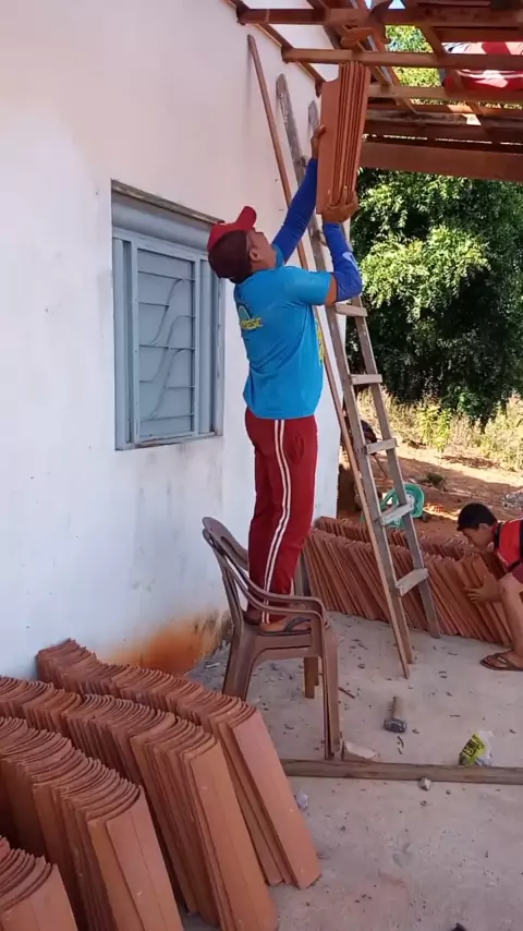 fazendo o telhado do alpendre da casa meu irmão