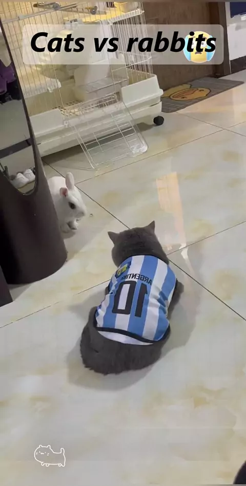 Cat fights with Rabbit #petslife #catslife #catlover #petlover #cats