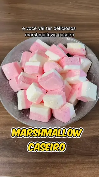 MARSHMALLOW caseiro. Super fácil. Ingredientes: 1 pacotinho de gelatina em pó sem sabor, 100 ml de água, 1 xícara de açúcar, mais 100 ml de água, suco de 1/2 limão, corante alimentício (opcional). #Marshmallow #doce #sobremesa #EstrelaDeFamilia #KwaiFamilia