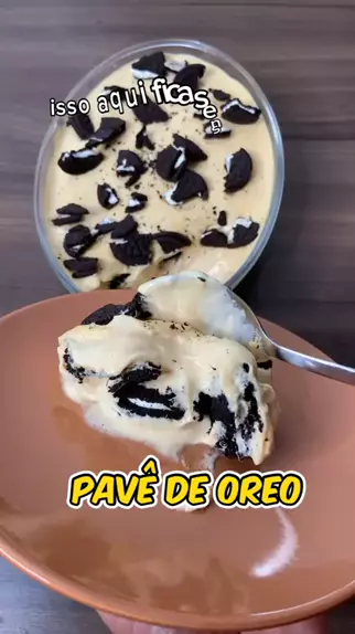 Pavê de Oreo Ingredientes: 300 gramas de biscoito tipo oreo 1 lata de leite condensado 1 caixinha de creme de leite 200 ml de leite 3 ovos 2 colheres de sopa de açúcar #pavê #oreo #topz #KwaiFamilia #Receitas