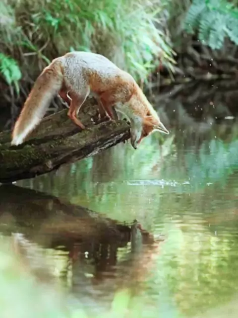 gm #fox #animal #water #reflection #orange #tree #green #goodmorning #morning
