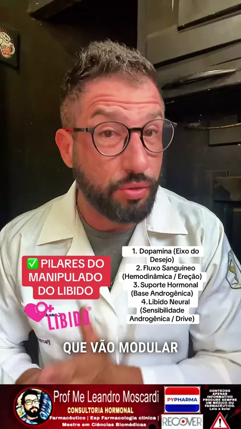 Composição técnica usada em manipulações de suporte à libido (conteúdo educacional, sem recomendação de uso): • Mucuna pruriens 40% L-Dopa – 250 mg • L-Tirosina – 300 mg • Pycnogenol – 60 mg • Tribulus terrestris 90% – 300 mg • Panax ginseng 10% – 200 mg • Gingko biloba 24/6 – 80 mg • Maca peruana 4:1 – 400 mg • Zinco quelado – 15 mg (elementar) • Magnésio bisglicinato – 150 mg • Vitamina D3 – 2000 UI • Vitamina K2 (MK-7) – 100 mcg