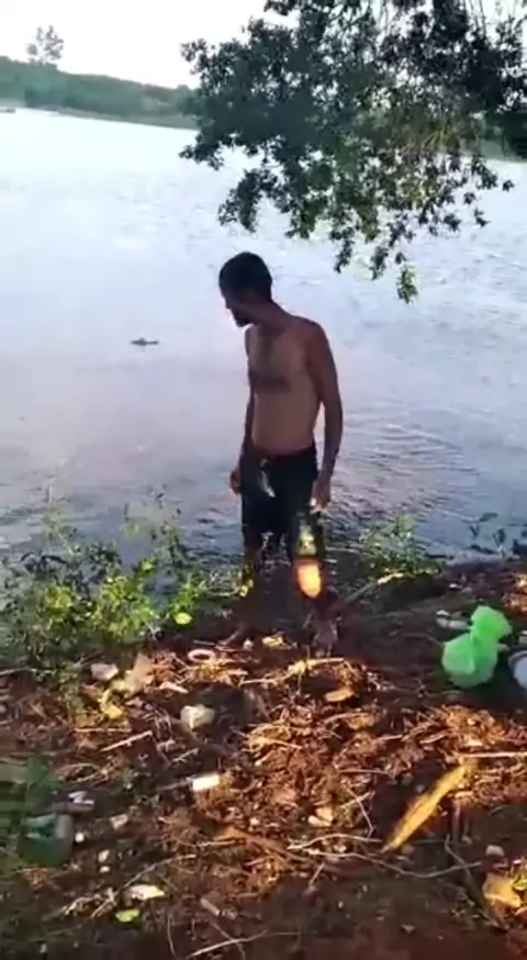 Homem é atacado por jacaré no lago. Muito cuidado !