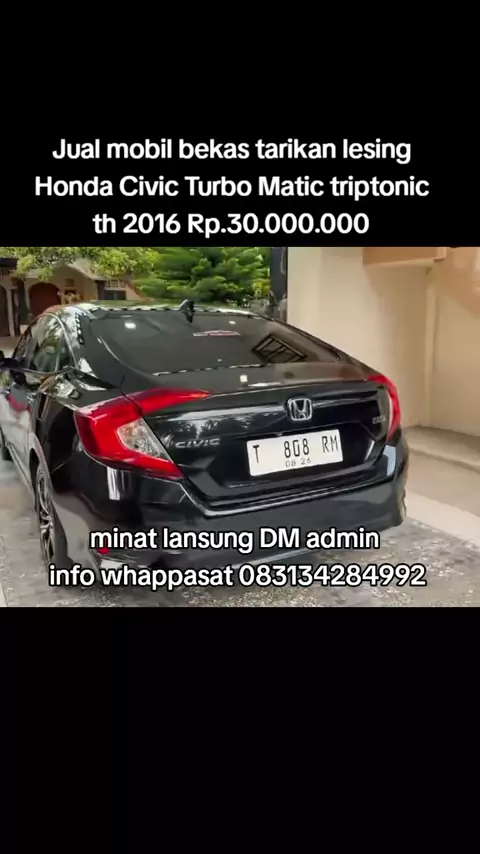 Honda Civic Turbo Matic triptonic th 2016 Rp.30.000.000 . Cocok Untuk yang pengen tampil Beda . Spek : - Plat T karawang jawa barat tangan 1 dari baru , pjk on , surat lgkp Bpkb stnk faktur , buku servis . buku pedoman, kunci 2 fulset. barcode bbm, cek fisik kepolisian. - Bodi Cat mulus hitam favorit. - mesin segel alus, kering, km 80 rb an , matic responsif . teknologi Turbo irit dan bertenaga. bbm 1 liter 16 km super irit. - Ac dingin nyes dobel blower . - interior original jok kulit . - pan...