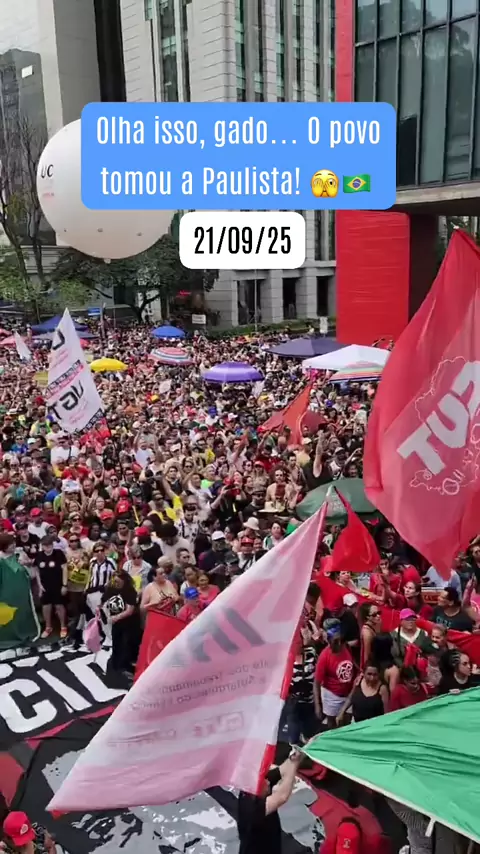 Hoje o Brasil falou mais alto! A Paulista lotada mostrou de que lado está o povo. #PaulistaLotada #PovoNaRua #BrasilDeVerdade #LulaAlegria #21deSetembro