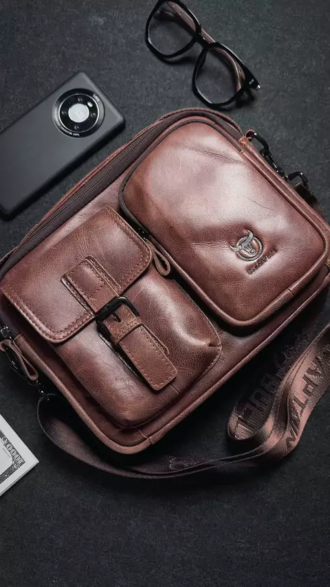 Men's Genuine Leather Crossbody Bag - Top Layer Cowhide, Minimalist Retro Style, Adjustable Strap, Multiple Compartments, Deep Brown, Perfect for Everyday Use or as a Thoughtful Gift, Professional Accessory | Sleek Leather Bag | Genuine Cowhide Leather