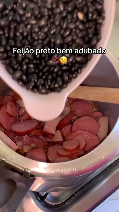 Oi vizinhas vem aprender a fazer esse feijão bem adubado 🫘🤤 #feijaopreto #donadecasanacozinhq #donadecasaon #feliciasefeijao