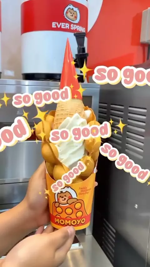 1 Egg waffle # Ice cream cone cuma 19k:!! #promomakangajian #eggwaffle #momoyo #milktea #momowaffle
