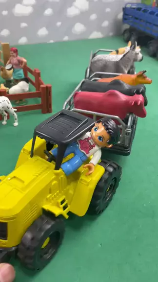 Yellow tractor arriving with / Trator amarelo chegando com animais #fazenda #cavalo #boi #trator #caminhao