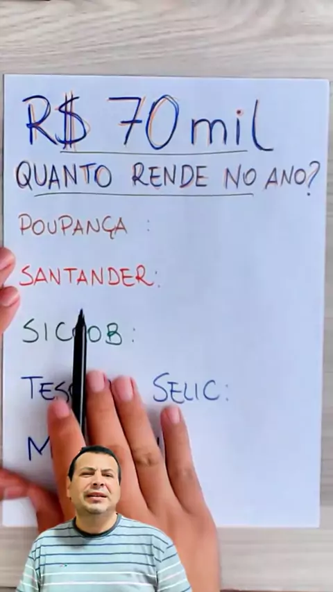 Quanto rende R$ 70 mil no ano caso coloque na POUPANÇA, no SANTANDER, no SICOOB, no TESOURO SELIC ou no MERCANTIL? #investimentos #dicas #dinheiro #premiokwai2025 #fy