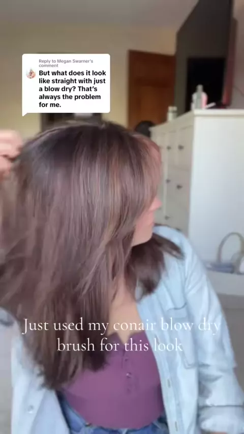 Respondendo a Swarner Isto Γ© o que a franja de cortina parece em cabelos lisos! Eu usei meu blowdry brush para deixΓ‘-lo elegante e suave e para estilizar a franja. # curtainbangs # fallhair # fallhaircolor # chocolatebrownhair # getthebangs # mediumlengthhair # mediumlengthhaircut # layeredhaircut # straighthair # blowdrybrush