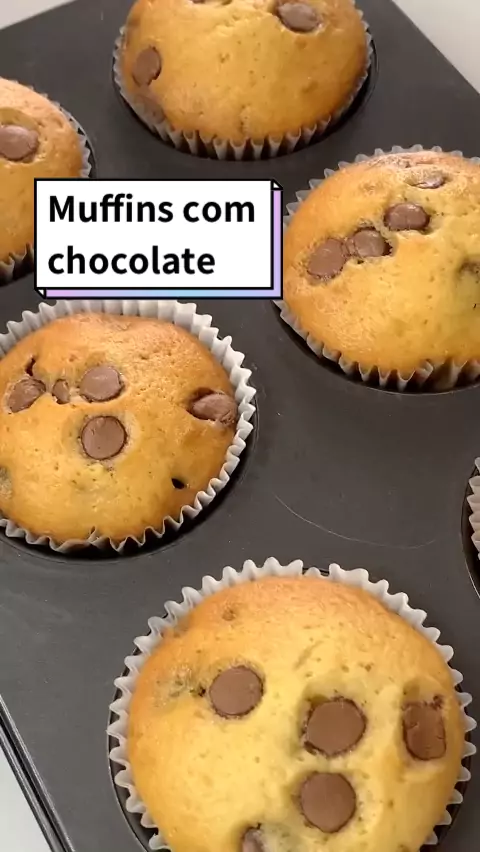 Muffins com gotas de chocolate 🍫 #receita #muffins #bolinho