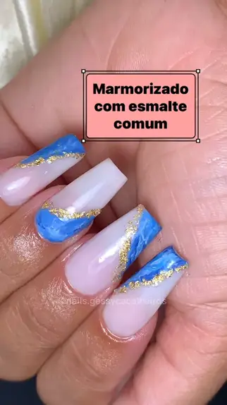Decoração marmorizada com esmalte comum na postiça #unhasmarmozida #Unhas #viral #F𒆜viral #posticarealistaa