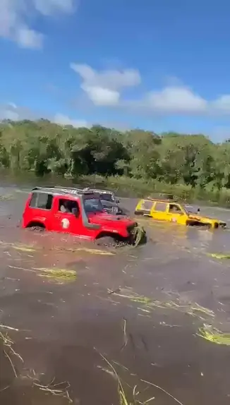 Vários Troller atravessando o rio #troller #Trilha #Kawai