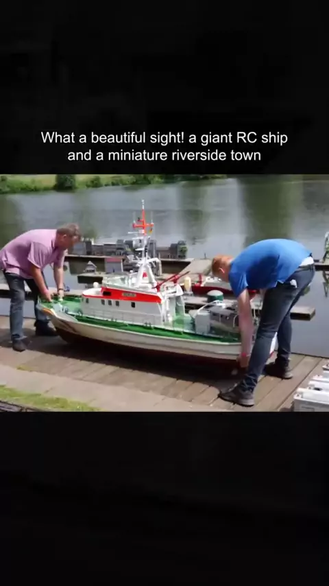 Que bela vista! Imagine um navio rc gigante e uma cidade ribeirinha em miniatura # rc # controle remoto # rcplane # rcboat # rcworld # fy