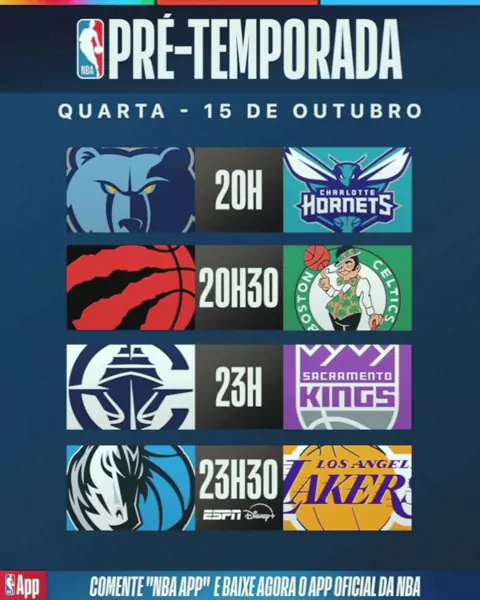 ๐ Quarta de prรฉ-temporada na NBA! ๐ 20h โ Grizzlies x Hornets ๐ฃ 20h30 โ Raptors x Celtics ๐ 23h โ Wizards x Kings ๐ฆ 23h30 โ Mavericks x Lakers Qual jogo vocรช vai acompanhar hoje? ๐๐ฅ #NBA #PreTemporada #Basketball