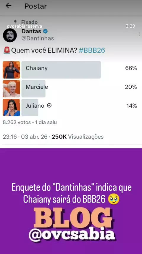 Enquete do "Dantinhas" indica que Chaiany sairá do BBB26 🥹