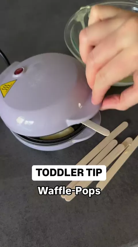 TODDLER TIP: Waffle-Pops Next time you make waffles for your toddler - add a popsicle stick @the_goddard_fam #parentingtips #parentinghacks #motherhood #motherhoodjourney