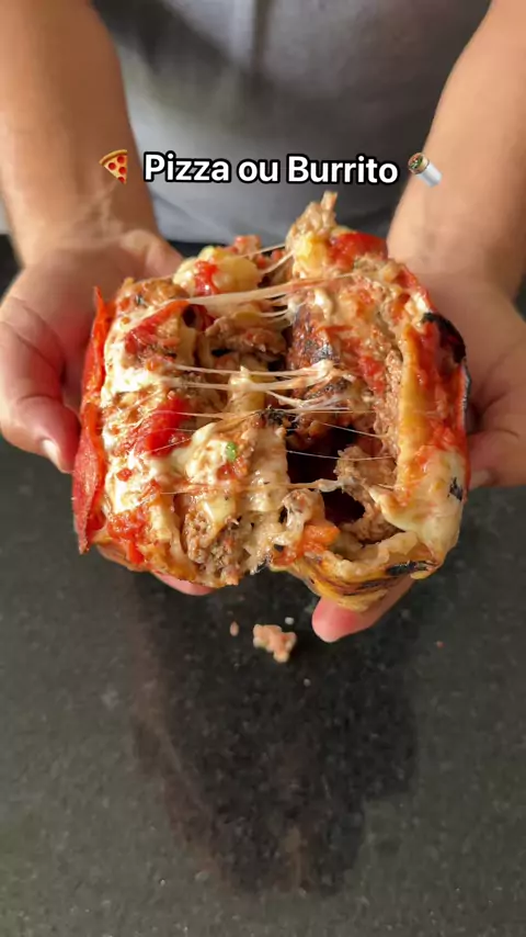 Pizza Burrito de carne moída temperada com pepperoni e mozzarella. 😱 . . . #pizza #pizzalover #pizzatime #burrito #texmex