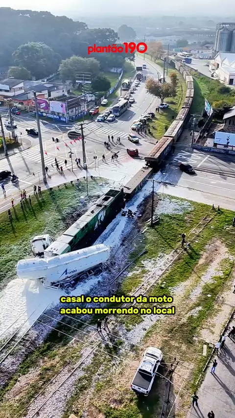 08/05/2025 - 8h30 - Uma falha no semáforo resultou em tragédia no município de Pinhais. Uma composição férrea atingiu uma carreta, dois carros e um casal em uma moto. Infelizmente o condutor da moto perdeu a vida no local. #acidente #Curitiba #noticias