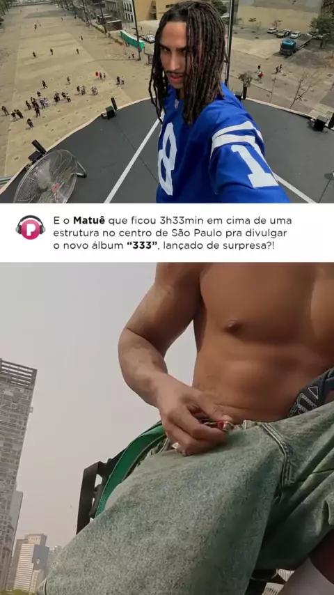 E o Matuê que aproveitou o lançamento surpresa do seu novo álbum "333" pra ficar 3h33min em cima de uma estrutura montada no centro de São Paulo?! No final da ação, ele ainda recebeu um mimo entregue por um drone e registrou tudo com uma câmera! Quem amou?